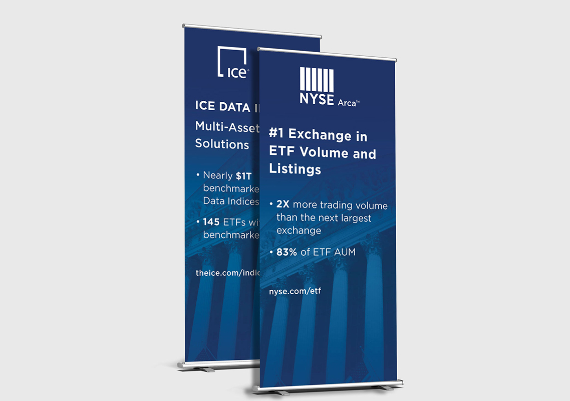 Pull Up Banners created for an Indices and ETFs workshop at the NYSE. It needed to emphasize the value of these services to the participans in a simple and clear way.