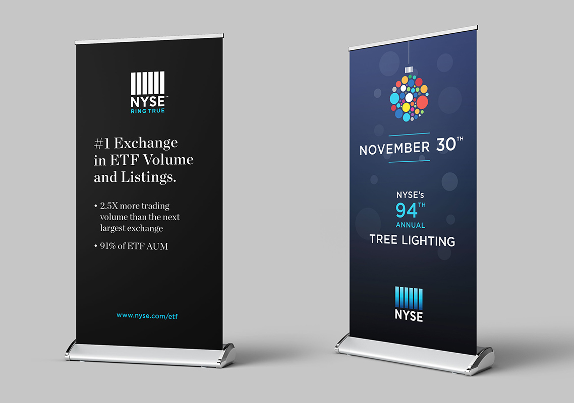 Pull Up Banners created for an Indices and ETFs workshop at the NYSE. It needed to emphasize the value of these services to the participans in a simple and clear way.